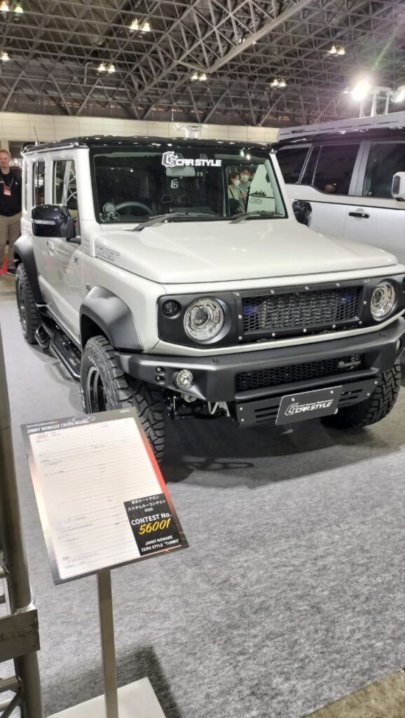 今年の目玉車は何といってもジムニーノマド!各ブース、ノマドカスタム車多めでした!